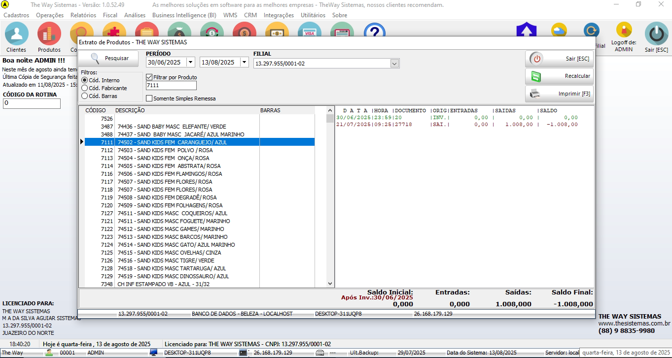 - Transferência de estoque entre matriz/filiais;