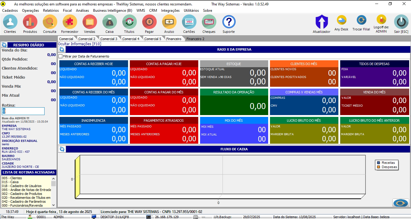 - Fluxo de caixa;